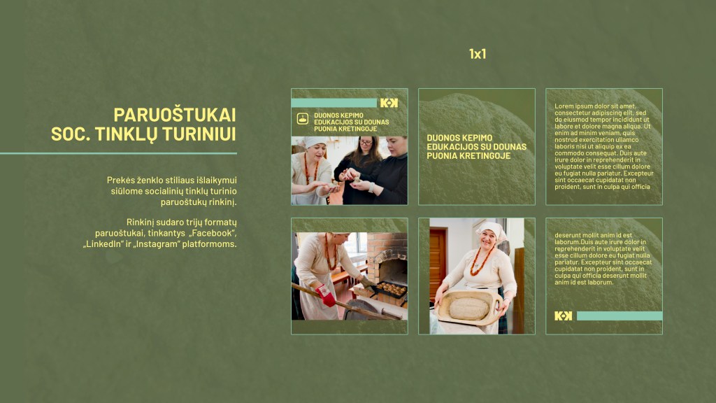 Sukūrėme vizualinį identitetą: logotipą, spalvų paletę, šriftų sistemą ir ikonografiją, kuri remiasi tradicine žemaitiška estetika bei yra lengvai pritaikoma skaitmeniniuose ir fiziniuose formatuose.